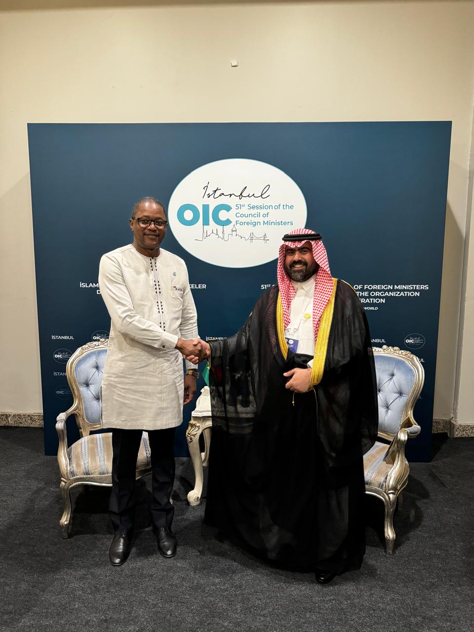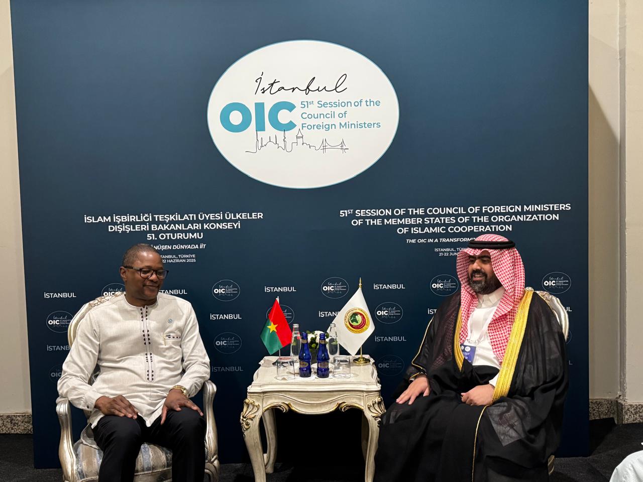 التقى سعادة الأستاذ محمد بن سليمان أبا الخيل، المدير التنفيذي لصندوق التضامن الإسلامي، معالي السيد كاراموكو جين ماري تراوري، وزير خارجية بوركينا فاسو، يوم الأحد 22 يونيو 2025م، وذلك على هامش انعقاد الدورة الحادية والخمسين لمجلس وزراء خارجية الدول الأعضاء في منظمة التعاون الإسلامي التي عقدت يومي 21-22 يونيو 2025م في إسنطبول بالجمهورية التركية.