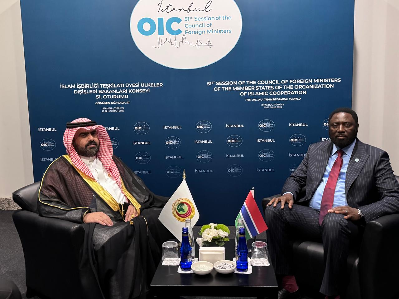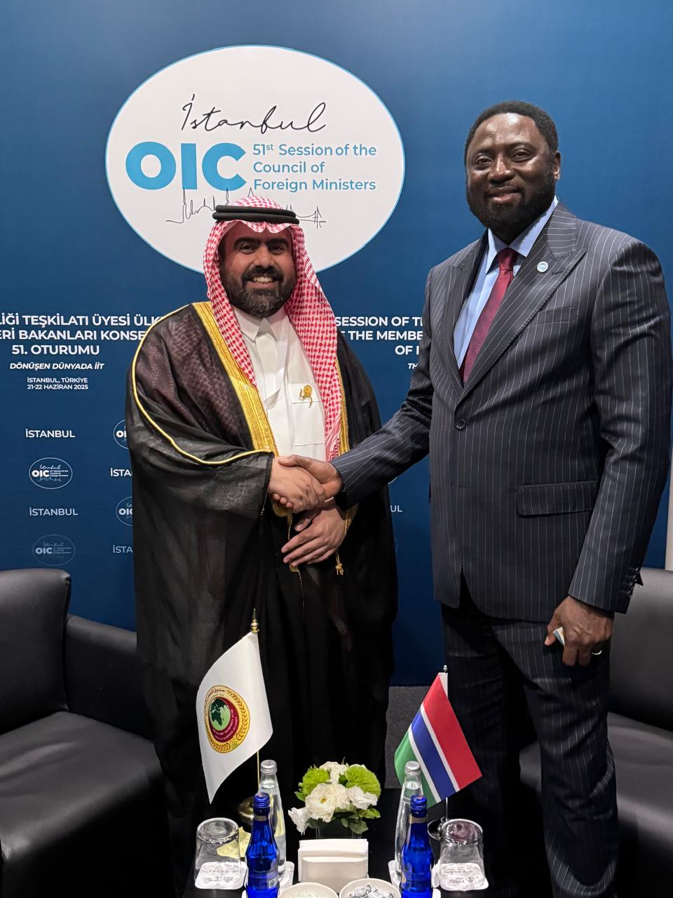 التقى سعادة الأستاذ محمد بن سليمان أبا الخيل، المدير التنفيذي لصندوق التضامن الإسلامي، معالي الدكتور مامادو تانجارا، وزير الخارجية والتعاون الدولي والغامبيين في الخارج، يوم الأحد 22 يونيو 2025م، وذلك على هامش انعقاد الدورة الحادية والخمسين لمجلس وزراء خارجية الدول الأعضاء في منظمة التعاون الإسلامي التي عقدت يومي 21-22 يونيو 2025م في إسنطبول بالجمهورية التركية.